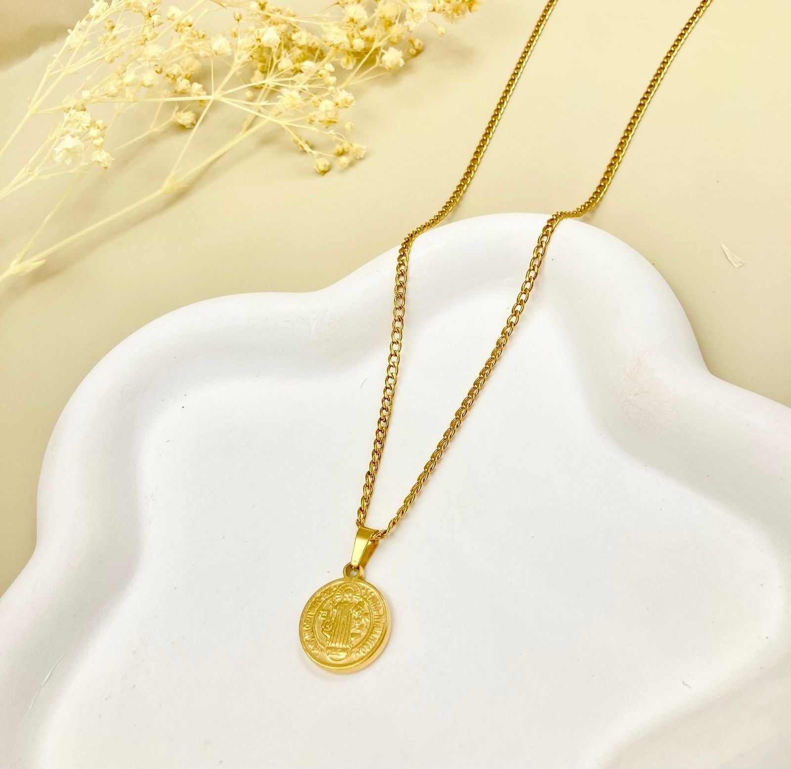 AC1304 - DIJE EN ACERO SAN BENITO CON CADENA