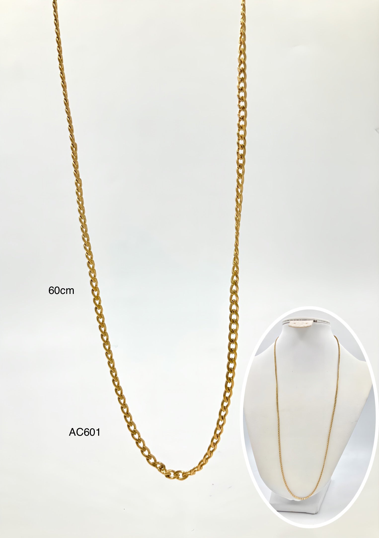 AC601 - CADENA CUBANA EN ACERO DELGADA 60CM