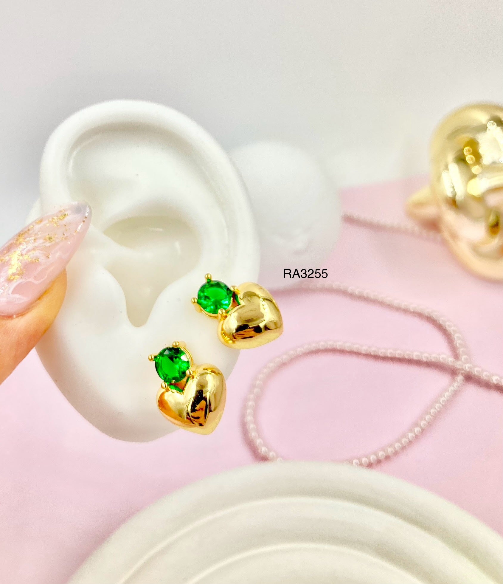 RA3255 - ARETE EN RODIO PIEDRA VERDE