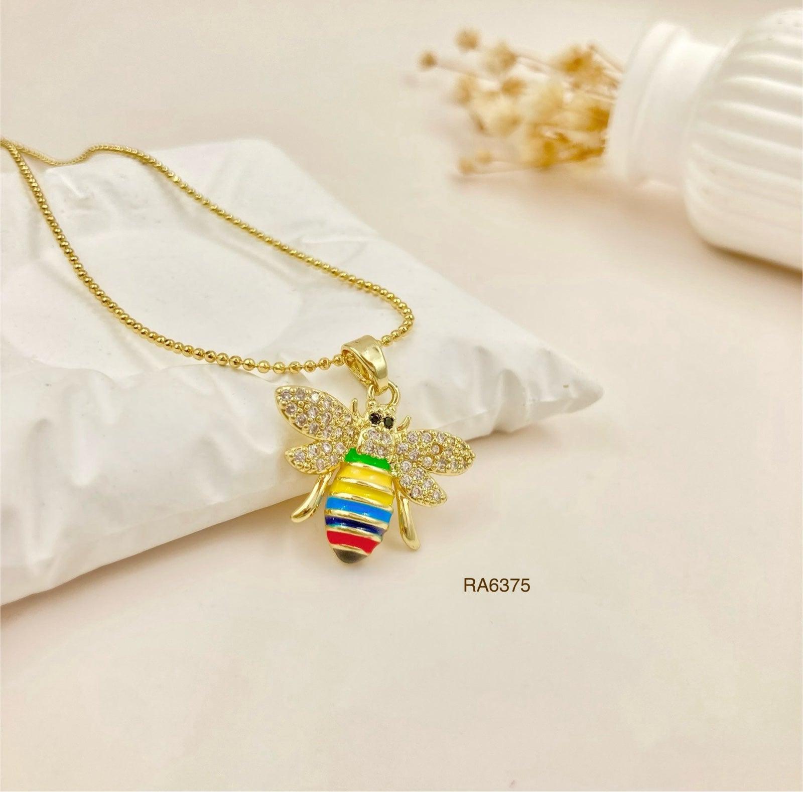 RA6375 - DIJE AVEJA COLORES CON CADENA RODIO