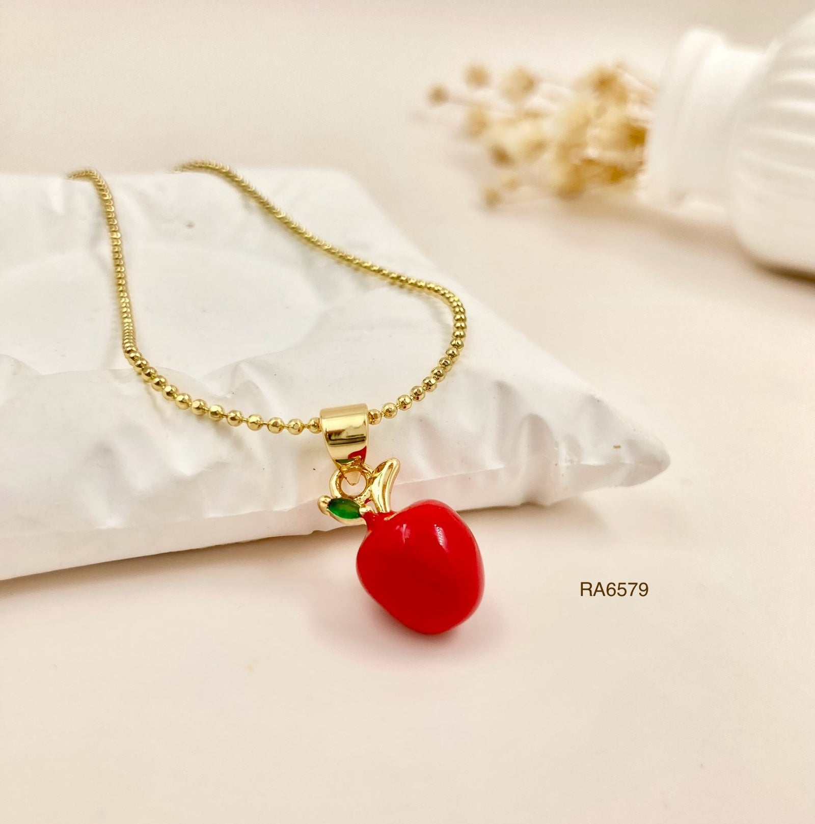 RA6579 - DIJE MANZANA EN RODIO CON CADENA